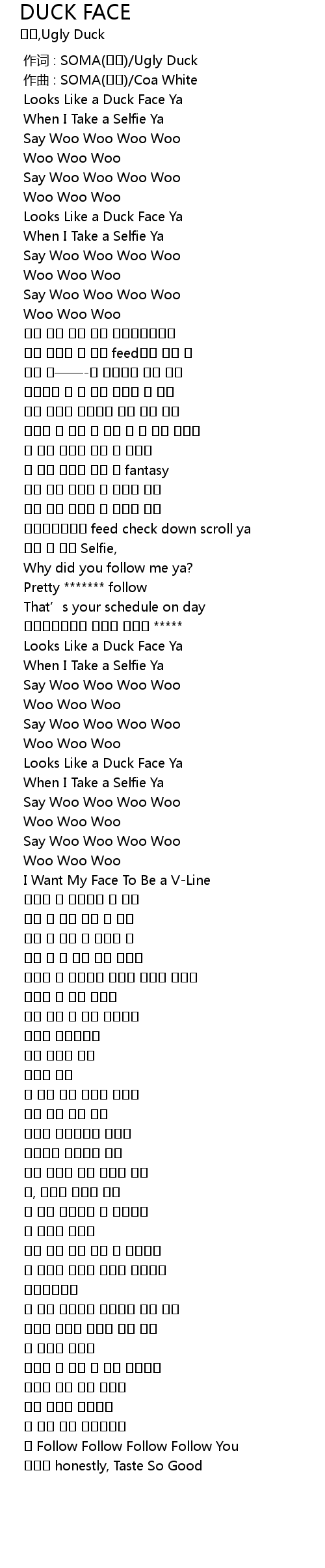 | [01:33.289] | Looks Like a Duck Face Ya |