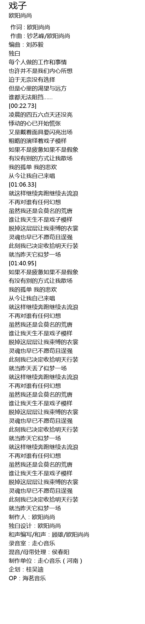 | [04:05.35] | 制作人:欧阳尚尚 |