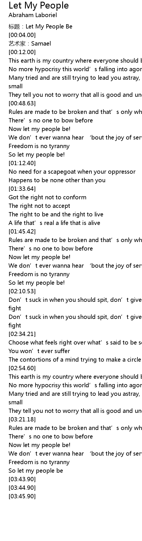 | [03:32.04] | We don’t ever wanna hear ‘bout the joy of servility |