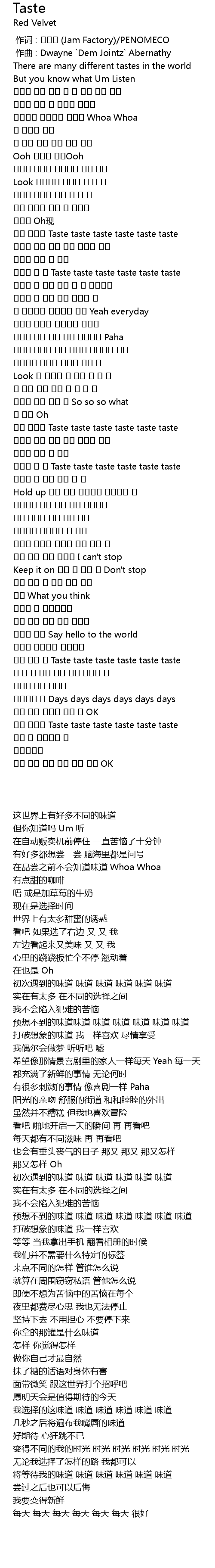 | [00:42.0] | 처음 만나는 Taste taste taste taste taste taste |