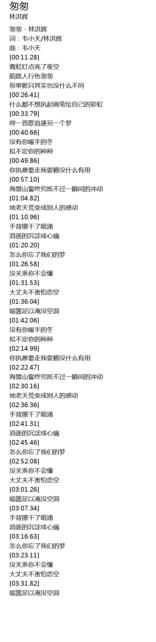 | [00:01.26] | 匆匆 - 林洪辉 |