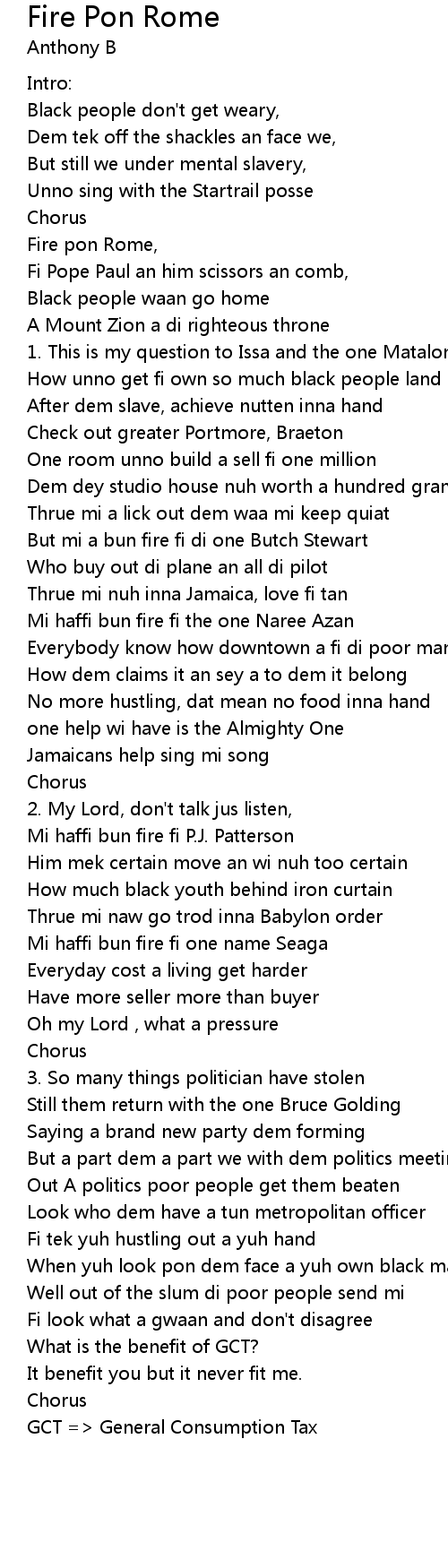 Thrue mi naw go trod inna Babylon order |