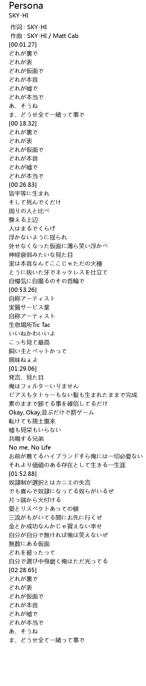 | [00:00.000] | 作词 : SKY-HI |