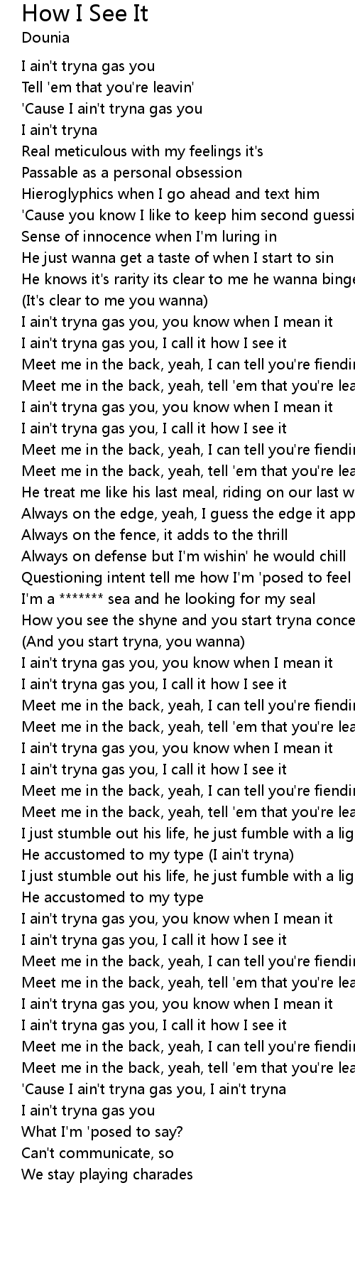 I ain't tryna gas you, I call it how I see it |