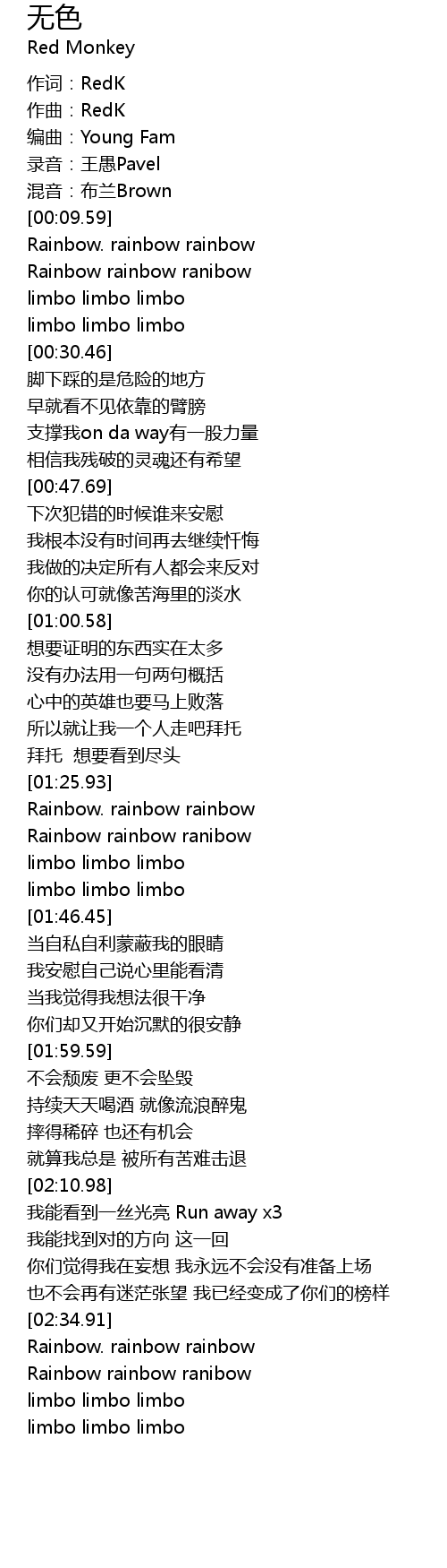 | [02:35.49] | Rainbow. rainbow rainbow |