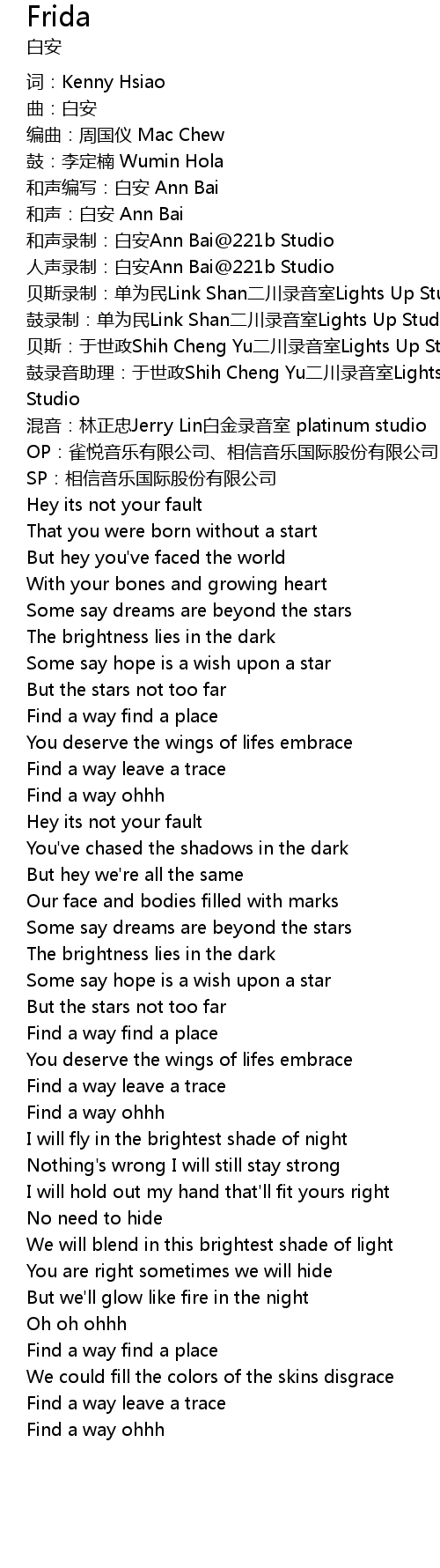 | [00:04.37] | 和声编写:白安 Ann Bai |