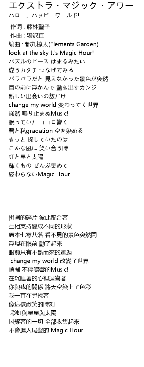 | [01:22.34] | 不會進入尾聲的 Magic Hour |