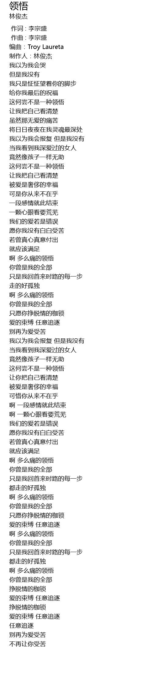 | 歌曲 | 领悟 |
