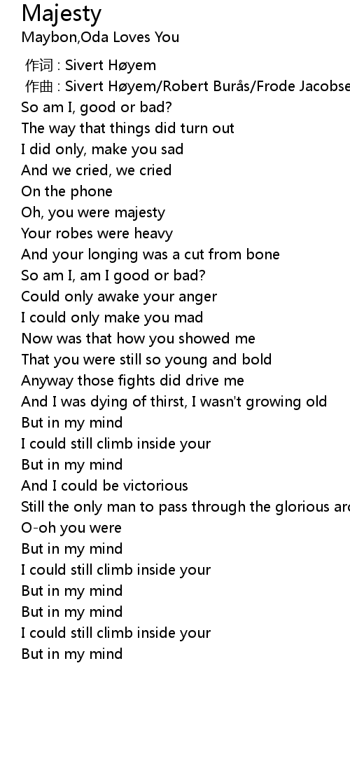 | [00:43.45] | Oh, you were majesty |