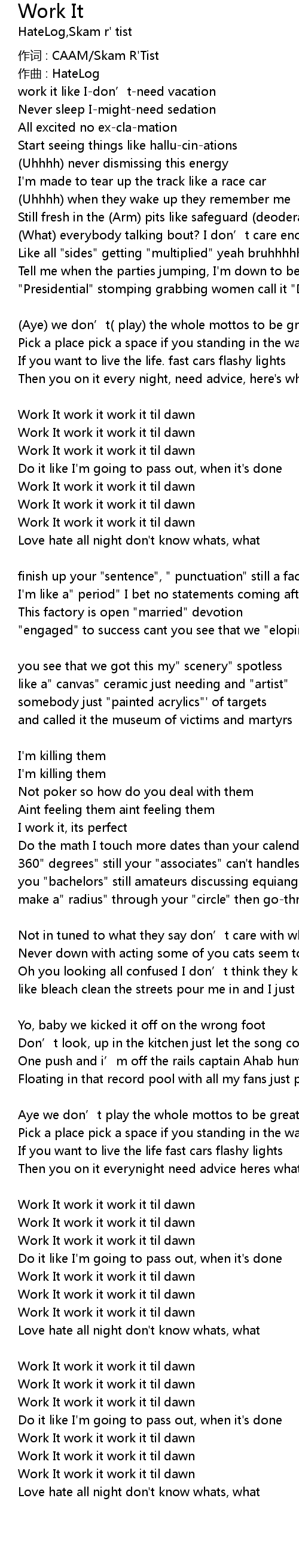 | Work It work it work it til dawn | |