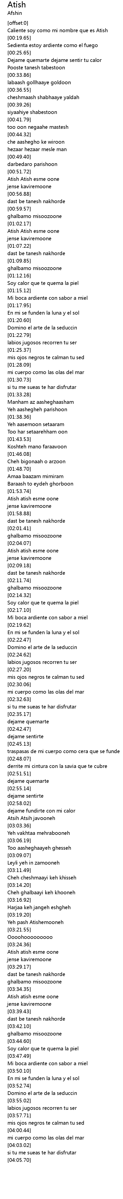 | [00:16.93] | Caliente soy como mi nombre que es Atish |