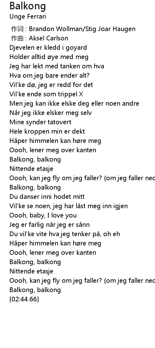| [01:13.73] | Oooh, kan jeg fly om jeg faller? om jeg faller ned |