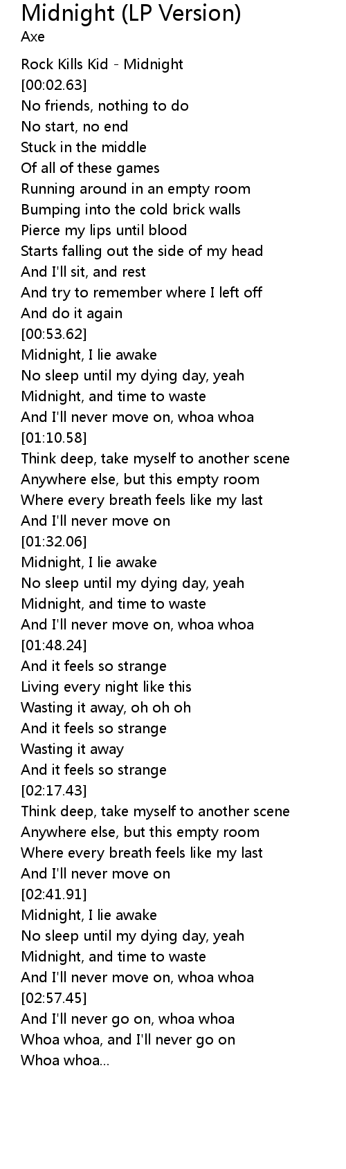| [00:01.08] | Rock Kills Kid - Midnight |