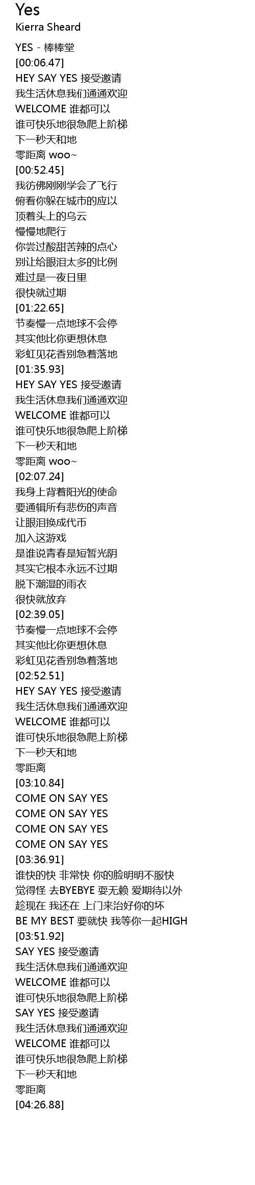 | [02:53.00] | HEY SAY YES 接受邀请 |