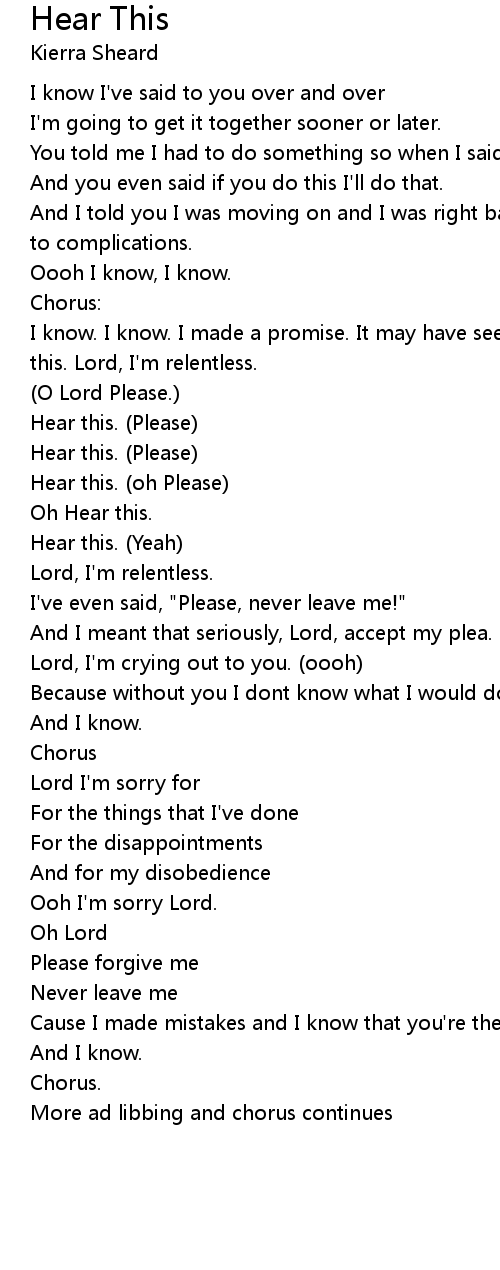 I know. I know. I made a promise. It may have seemed like jiberish. Please hear this. Lord, I'm relentless. |