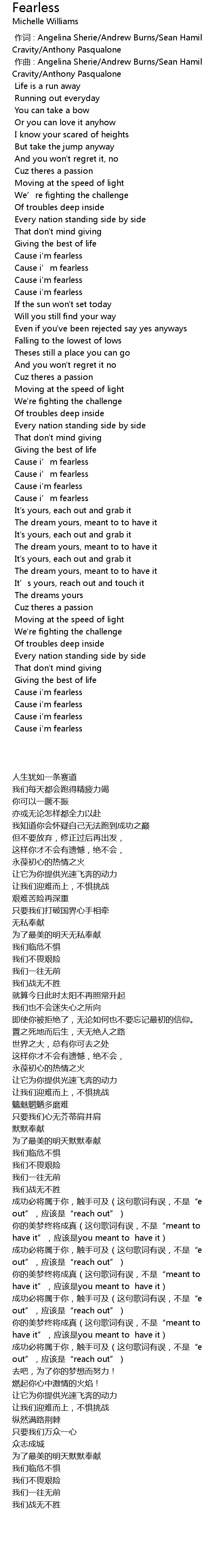 | [02:38.965] | 成功必将属于你,触手可及(这句歌词有误,不是“each out”,应该是“reach out”) |