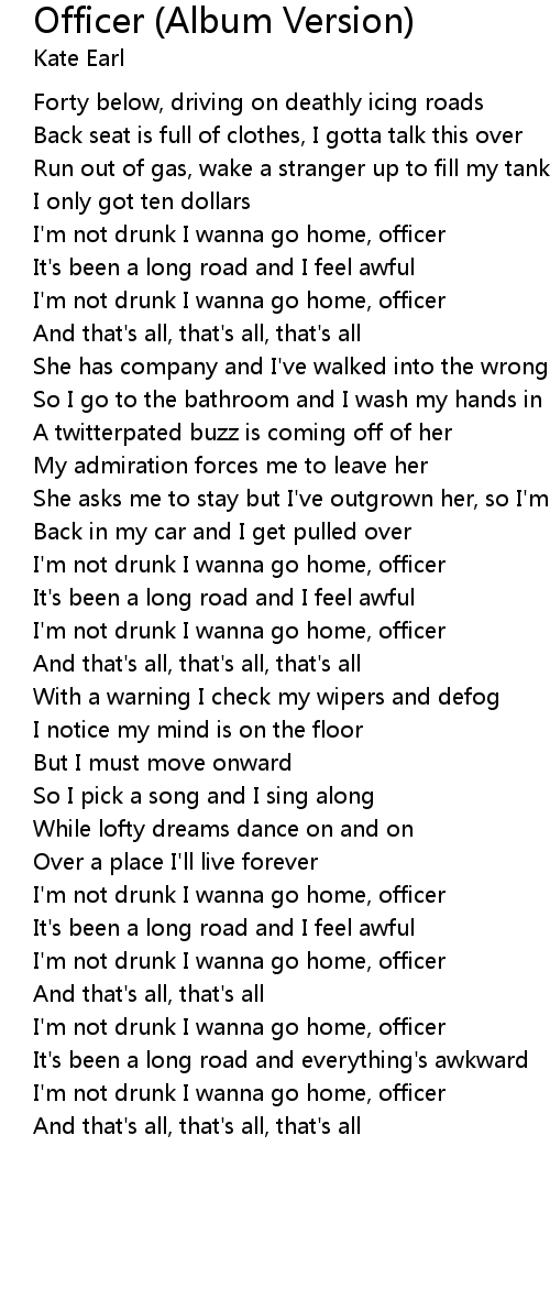 I'm not drunk I wanna go home, officer |
