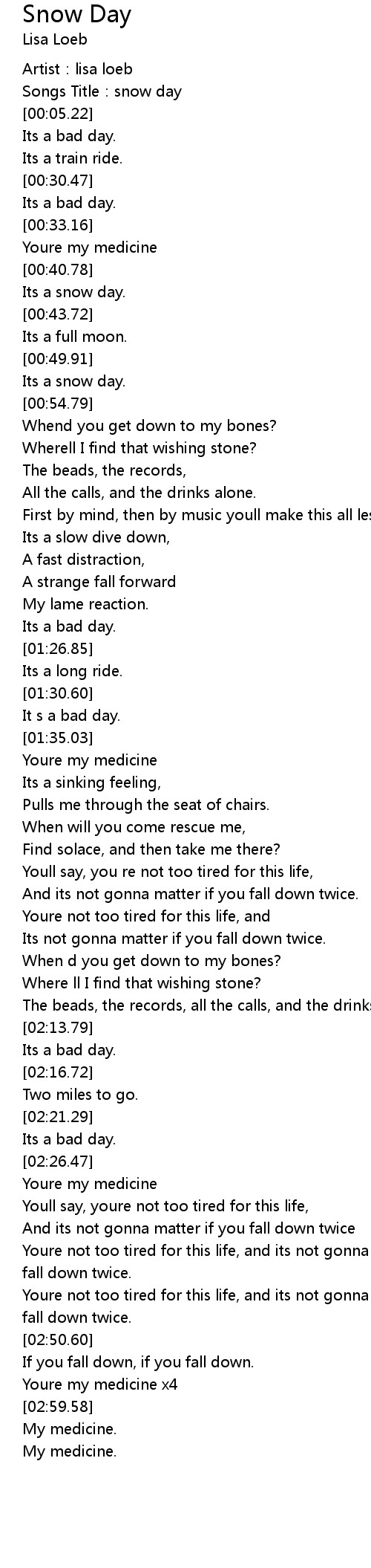 | [00:41.78] | Its a snow day. |