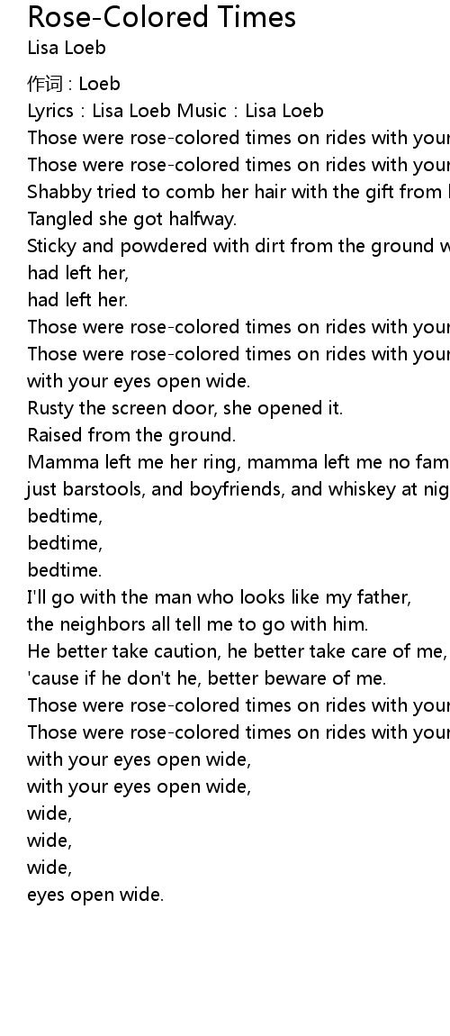 | Those were rose-colored times on rides with your eyes open wide. | |