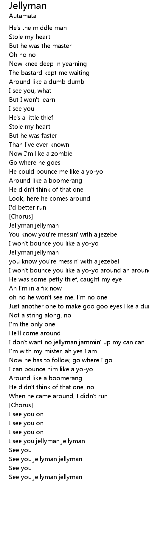I don't want no jellyman jammin' up my can can |