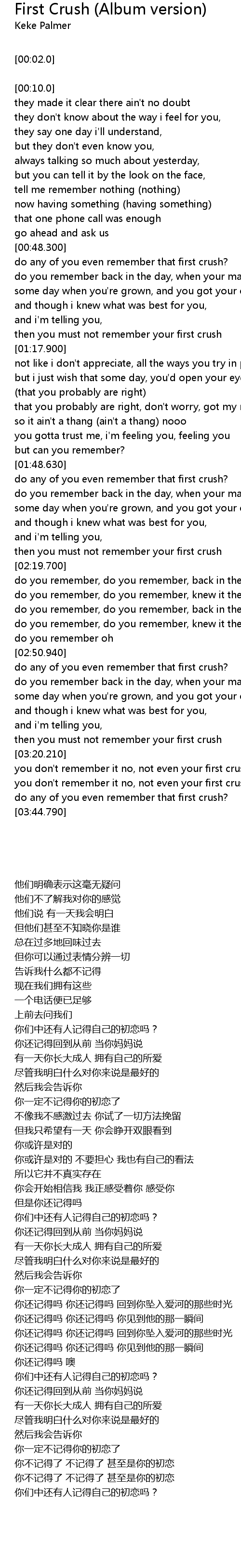 | [03:23.850] | you don' t remember it no, not even your first crush, |