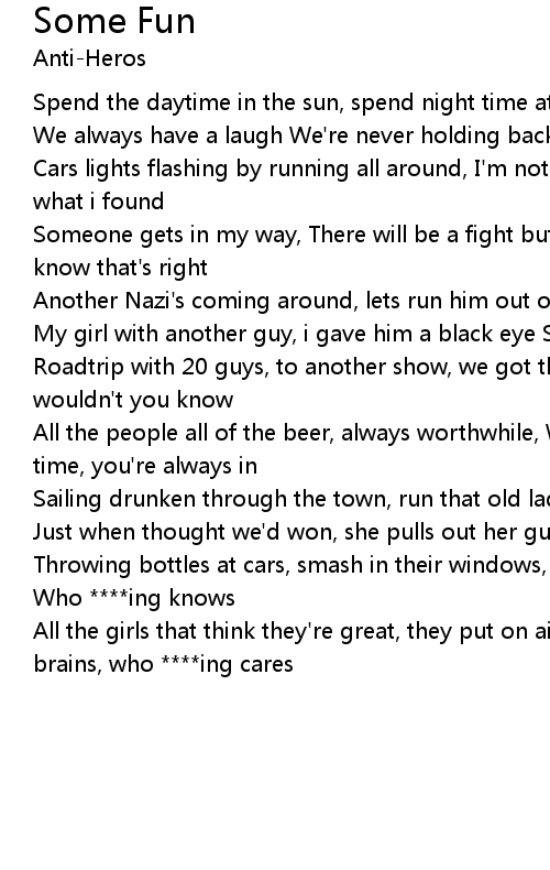Sailing drunken through the town, run that old lady down, Some fun! Some fun!