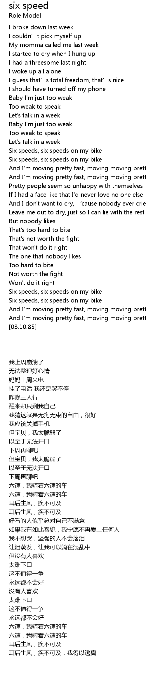 | [02:47.01] | Six speeds, six speeds on my bike |
