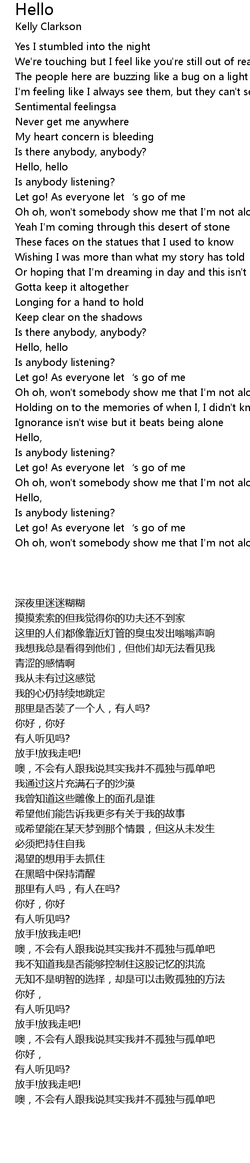 | [01:46.000] | Oh oh, won't somebody show me that I'm not alone, not alone |