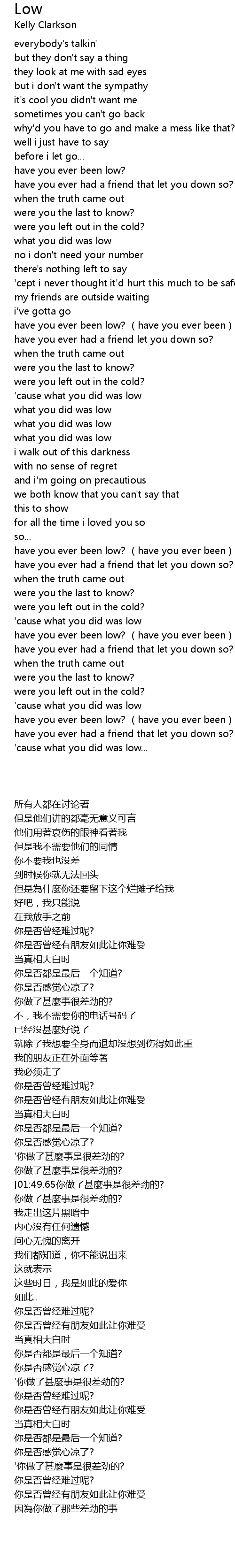 | [02:45.170] | have you ever been low? (have you ever been) |