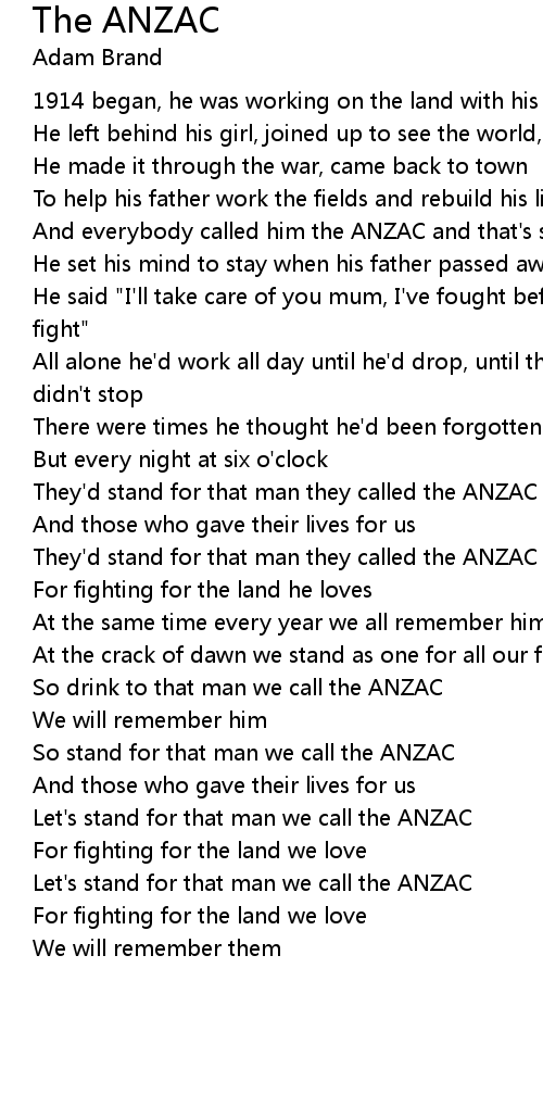 Let's stand for that man we call the ANZAC |