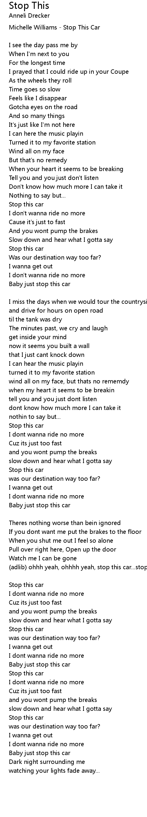 (adlib) ohhh yeah, ohhhh yeah, stop this car...stop This car