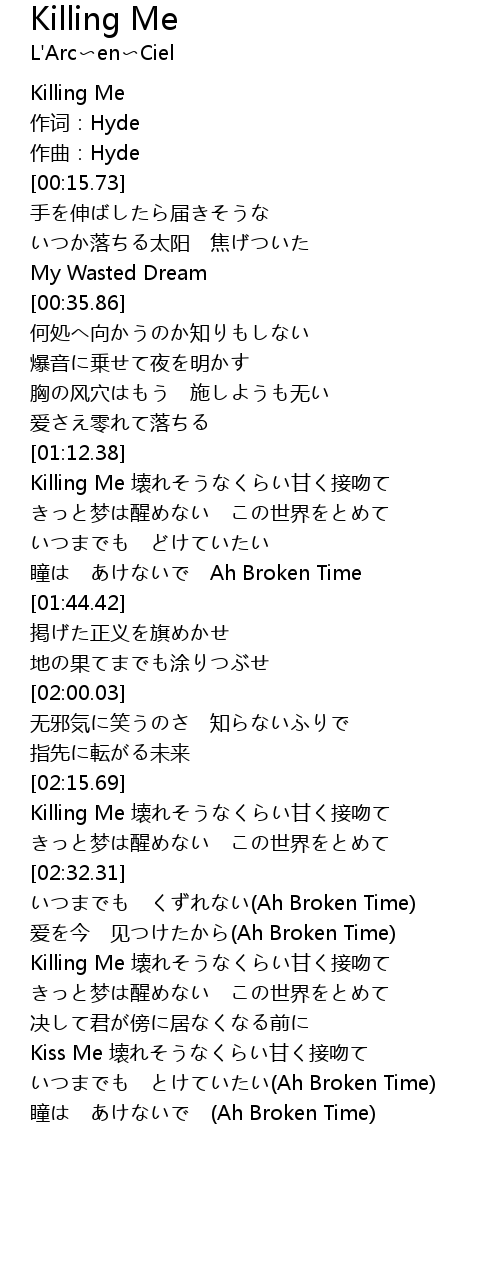 | [01:14.17] | Killing Me 壊れそうなくらい甘く接吻て |