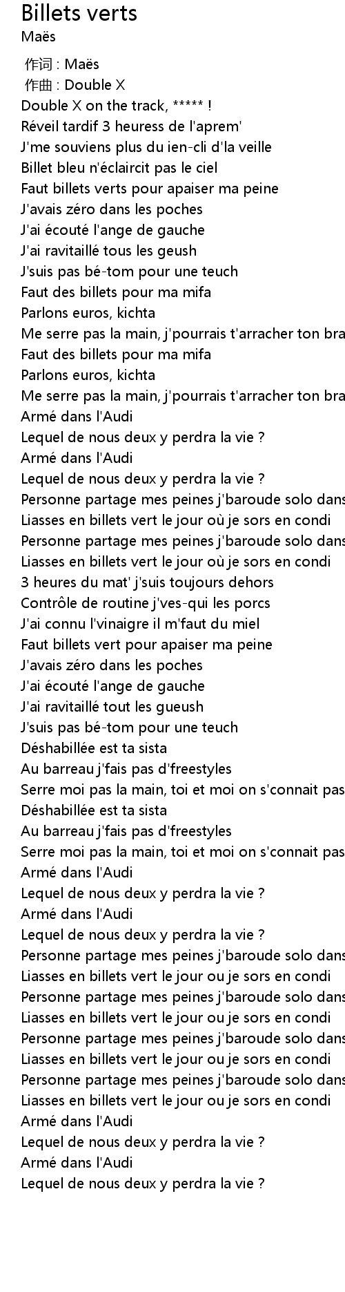 | [02:22.75] | Personne partage mes peines j' baroude solo dans l' Audi |