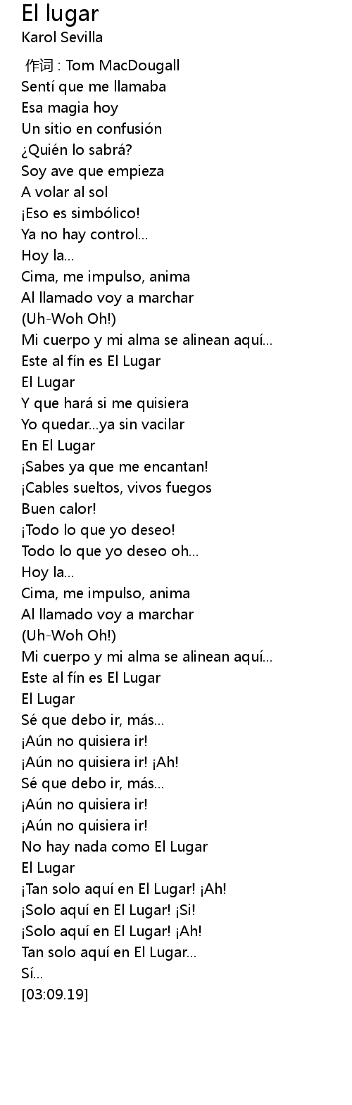 | [03:01.63] | Tan solo aqui en El Lugar... |