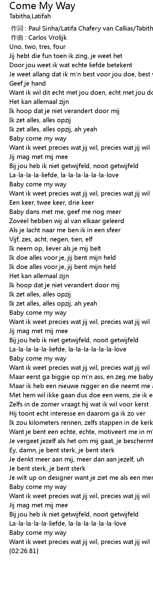 | [01:26.99] | Jij mag met mij mee |