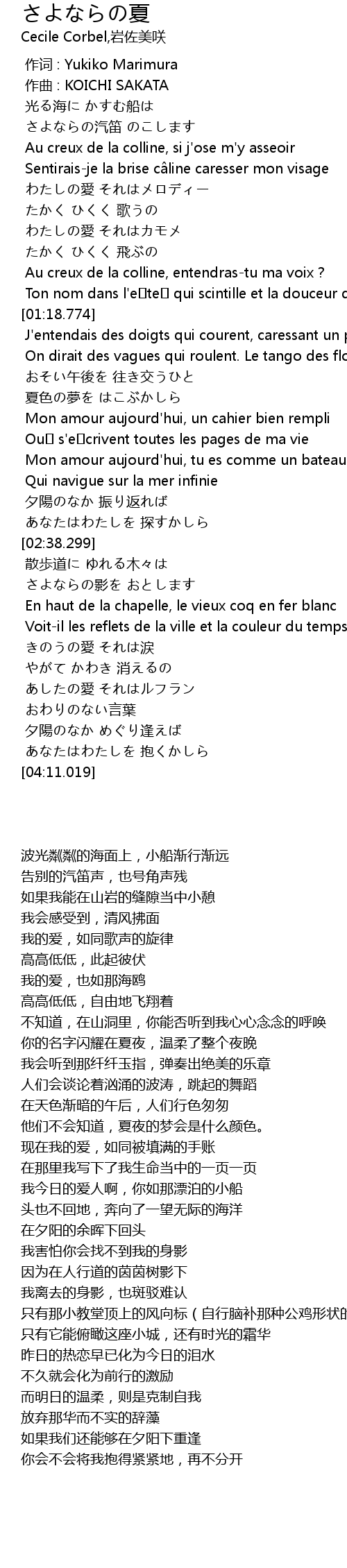 | [00:00.000] | 作词 : Yukiko Marimura |
