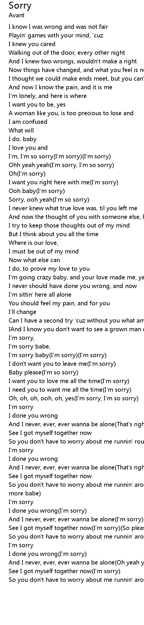 | I'm sorry baby(I'm sorry)(I'm sorry) | |