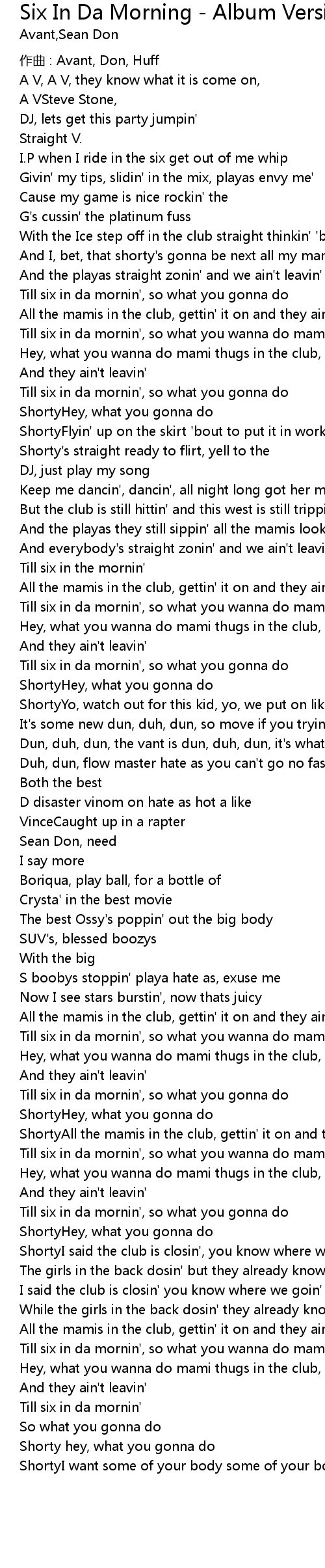 | Till six in da mornin' | |