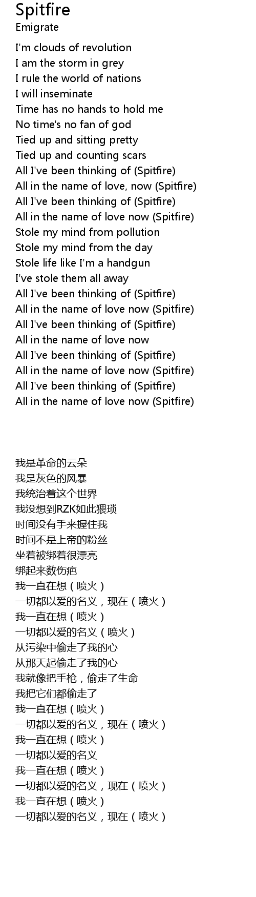 All in the name of love, now (Spitfire) |