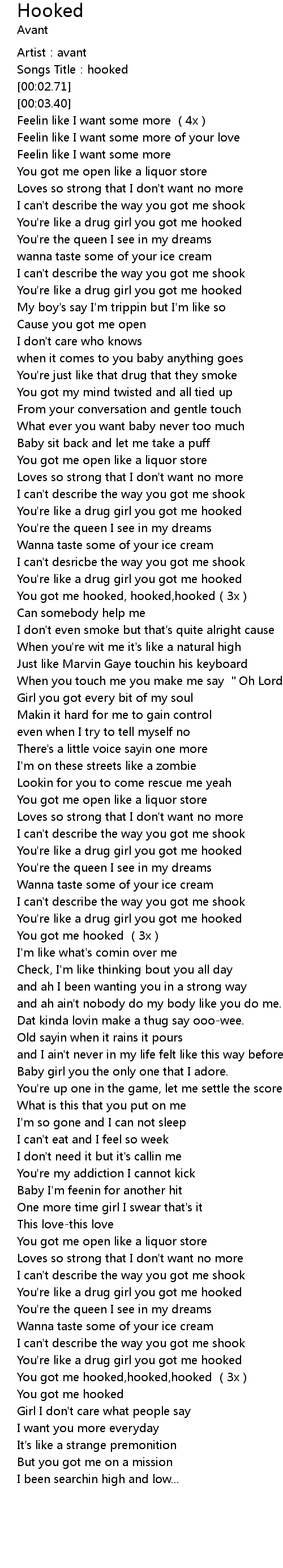 | [03:30.28] | You got me hooked, hooked, hooked 3x |