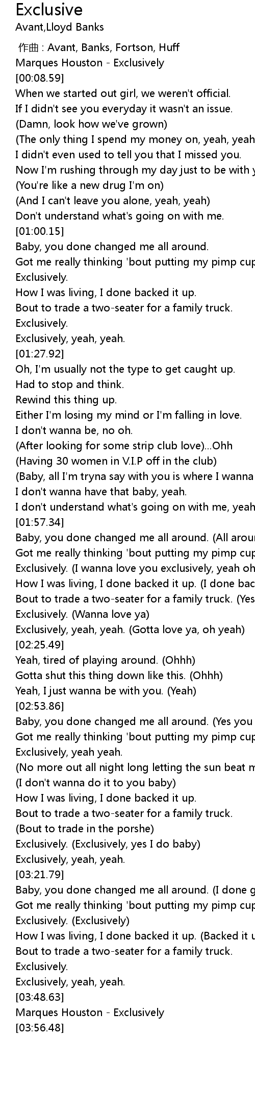 | [02:03.61] | Exclusively. (I wanna love you exclusively, yeah ohhh) |