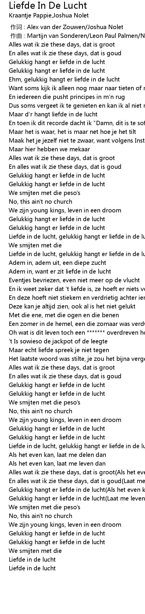 | [02:59.81] | Gelukkig hangt er liefde in de lucht(Laat me leven dan) |