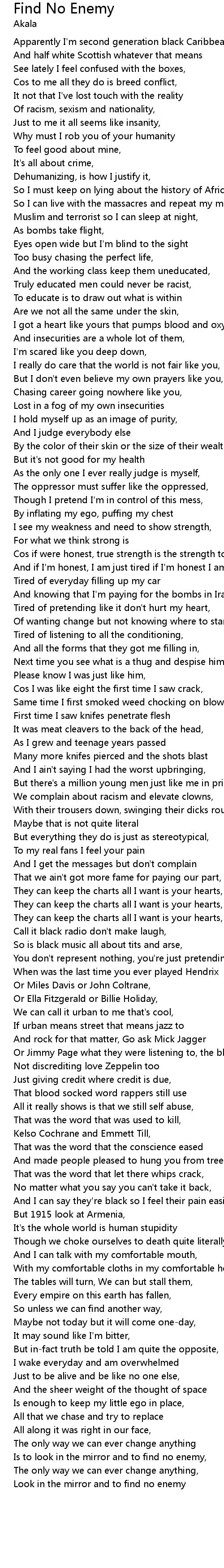 Look in the mirror and to find no enemy |
