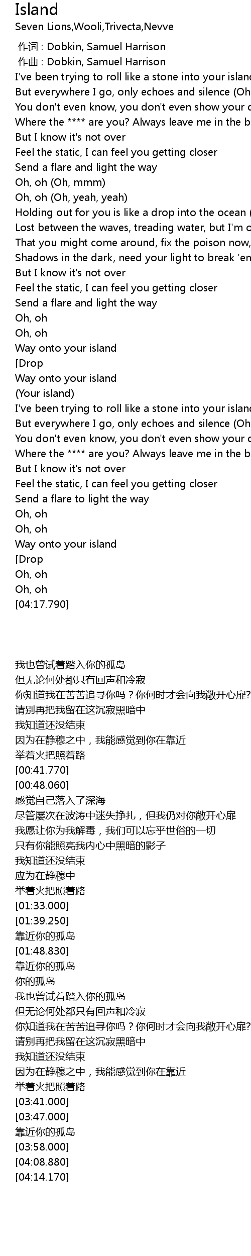 | [00:03.480] | I've been trying to roll like a stone into your island (Oh, oh) |