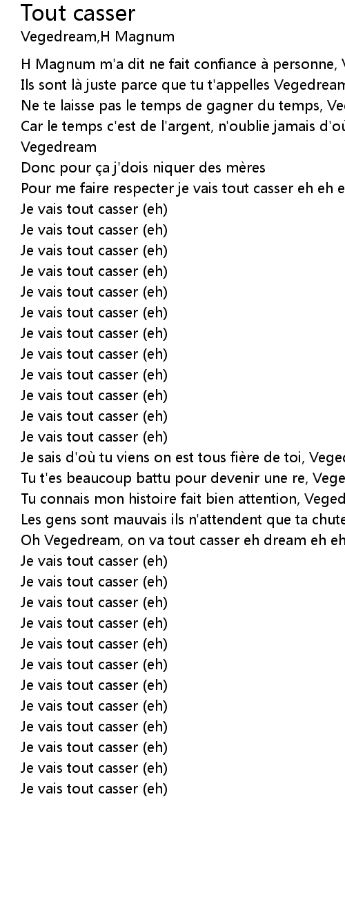 | [00:45.92] | Je vais tout casser (eh) |