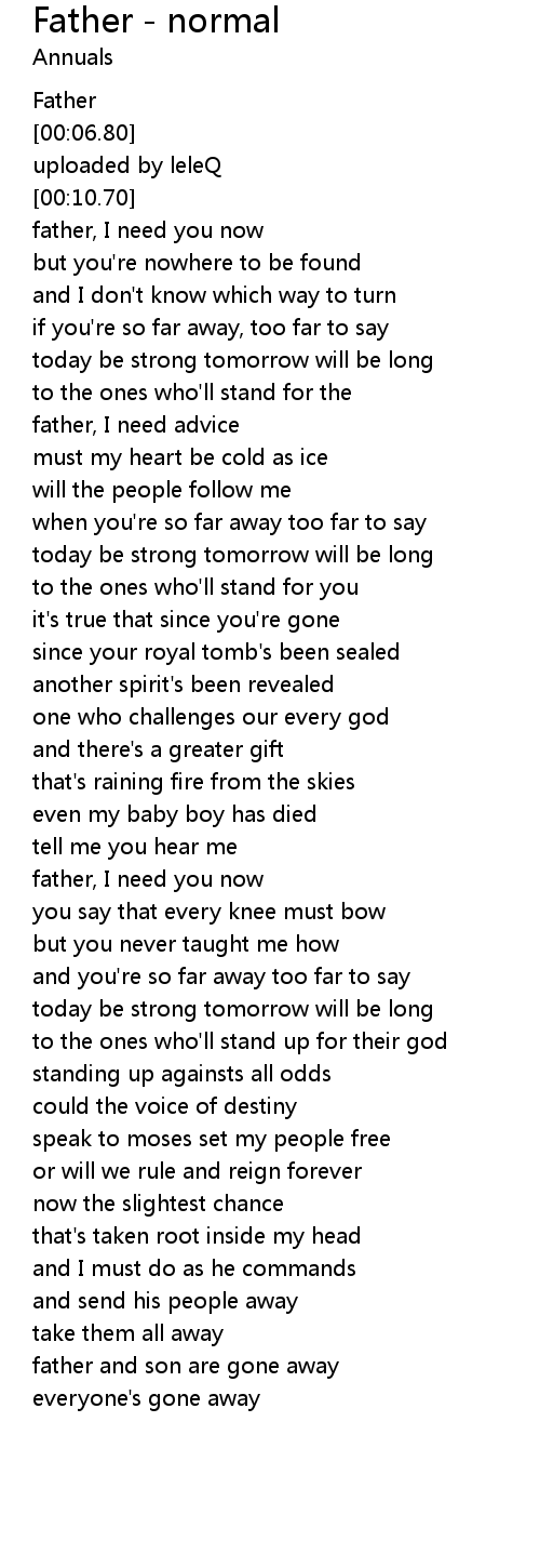| [00:15.09] | father, I need you now |