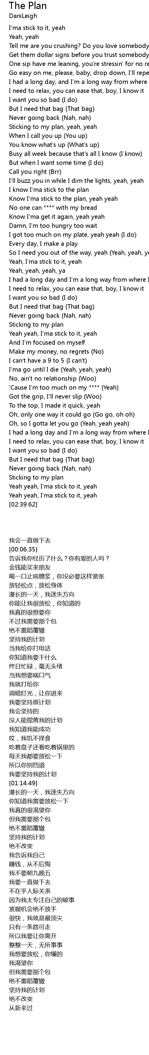 Know I'ma stick to the plan, yeah yeah |