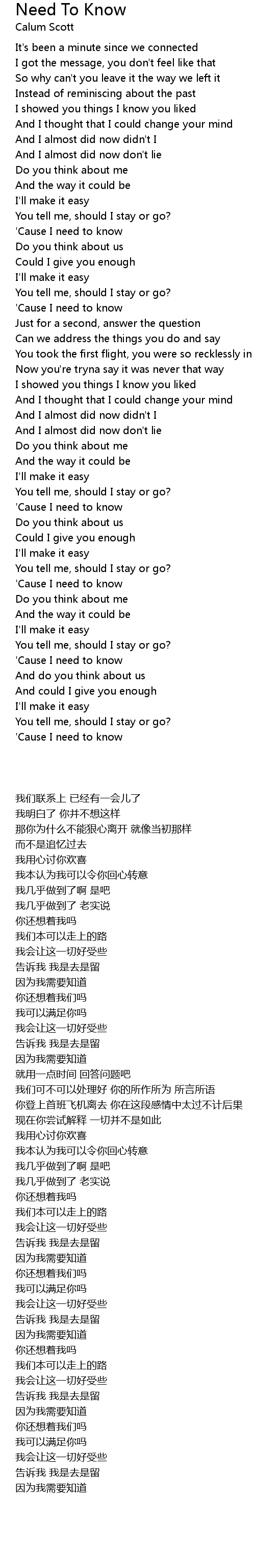 'Cause I need to know |