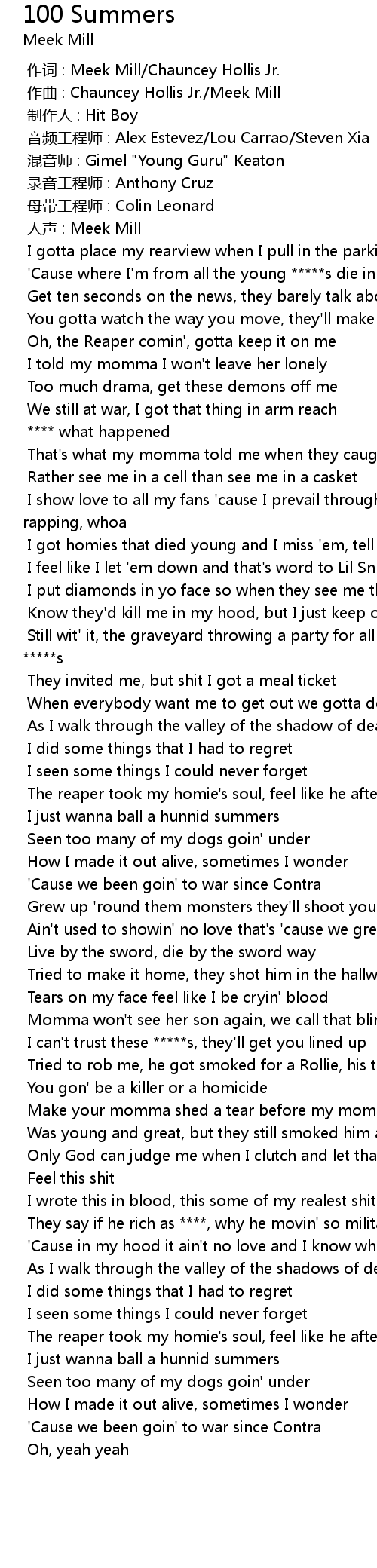 | [00:00.000] | 作词 : Meek Mill/Chauncey Hollis Jr. |