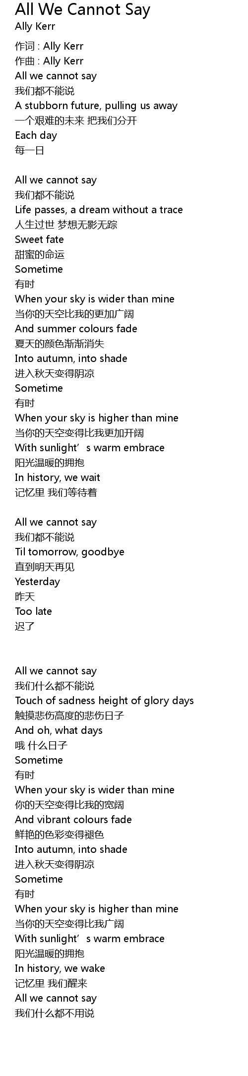 | 歌曲 | All We Cannot Say |